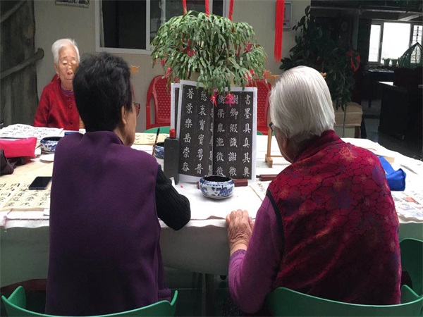 林老年公寓在因疫情封闭管理后,组建了书法班和文体班,丰富老人们的日常生活,让老人们聚在一起,感受集体活动的欢乐。每周一、三、五,书法班的老人们八点多就结伴来到四楼的活动大厅,大家都觉得自己在一点点的进步,字写得越来越好。每周二、四、六,文体班的班长杜君佩妈妈和赵荣田爸爸会组织成员们齐聚活动大厅,大家一起投篮、唱歌,十分欢乐。