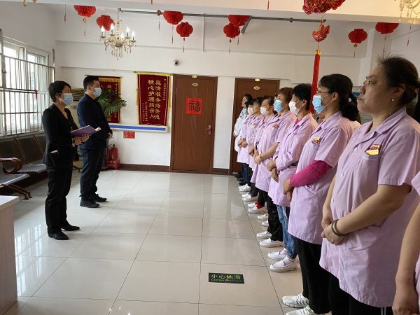 杏林老年公寓陈经理随后作补充:1、护理员在工作中应秉承“奉若父母,如同亲生”的服务理念,共同创造家庭般的氛围。2、注意与老人及家属沟通的方式方法,改善服务态度。