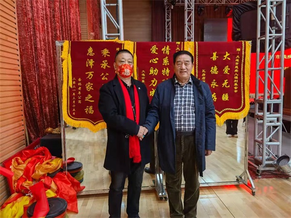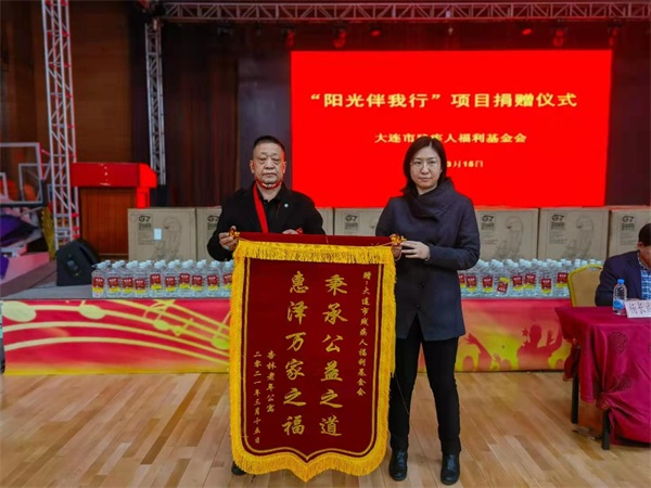 3月15日上午,大连市残疾人福利基金会“阳光伴我行”项目捐赠仪式在大连举行,杏林养老产业发展(大连)有限公司董事长陈善军出席并代表杏林老年公寓接受捐赠,同时为大连市残疾人福利基金会送上锦旗。