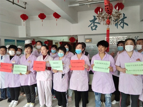 从特殊年代走来的老人们,对祖国的情感总是特别深厚,这份赤子之情也感染着杏林老年公寓的员工们,我们将和老人一起支持新疆棉花,支持国货,以自己微小的力量为祖国的富强之路添砖加瓦。
