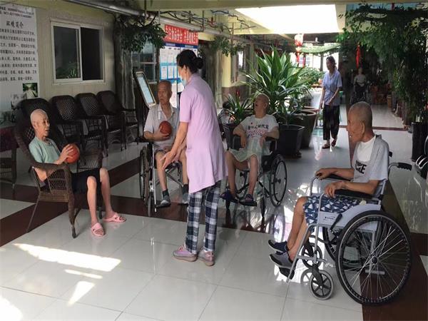杏林老年公寓在四楼的活动大厅组织老人在四楼玩手投球的游戏,让不能自理的老人也可在护理员的陪伴下活动活动筋骨,我们会一直保持下去。