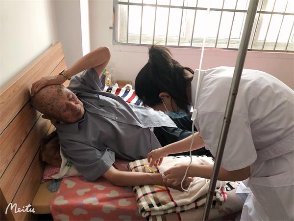 护士在给生病的老人打针 |