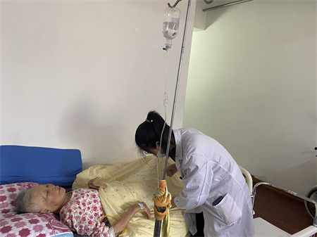 每天我都能看见医生和护士给生病的老人打针,对身体不适的老人作出诊断,并对症下药,及时治疗,让老人们减少病痛的折磨。经他们诊断治疗的老人身体明显好转,这是我们和家属都愿意看到的结果。