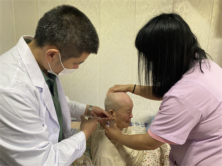 杏林老年公寓医生和护士每天都很忙,从早上八点开始给老人身体测量血压、还会定期给老人测血糖、现在换季到了有些老人身体会不太舒服、比如喘气不均匀、血压高、疏通血管等等......