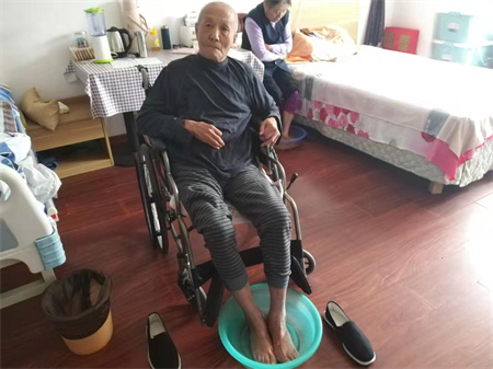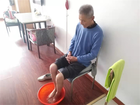 杏林老年公寓始终坚持每天都会给老人泡脚,始终如一,尤其是冬天到了,泡脚可以缓解脚部酸痛,护理员每天都会给老人打洗脚水给老人泡脚。