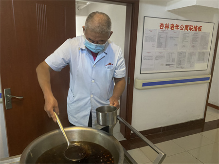 最近气候突然变凉,感冒频发。大连养老院杏林老年公寓都会随时在早上给老人熬制姜汤,给老人御寒,防止感冒,健身健体。这几年,没到天气变凉的时候,大连杏林老年公寓都会在早上为老人熬制姜汤,防止老人感冒生病,始终没有中断过,而且老人发生感冒的也越来越少了。