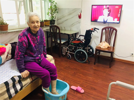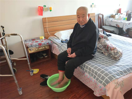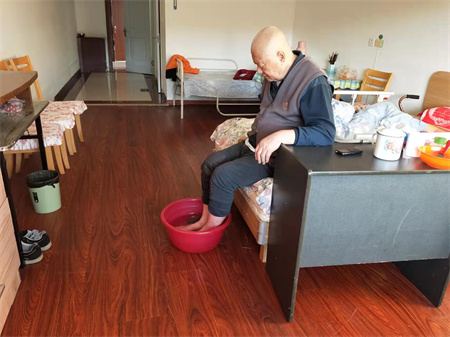 杏林老年公寓始终坚持每天都会给老人泡脚,始终如一,尤其是冬天到了,泡脚可以缓解脚部酸痛,护理员每天都会给老人打洗脚水给老人泡脚。
