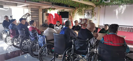 这次大连出现疫情后,杏林老年公寓及时进行封闭管理,工作人员全部留宿在院内,保障老人的安全。虽然全体老人都无法外出,但还是还会将坐轮椅的老人一起推到活动大厅转一转,让老人足不出户就得到充分的娱乐享受。杏林老年公寓的活动大厅宽敞明亮,老人们在这里下棋、练字、唱歌、看鱼,娱乐活动丰富多彩。书画班的老人聚在一起练字,文体班的老人一起唱歌、做运动,能自理的老人们积极发挥余热,一起推着坐轮椅的老人在大厅里散步。