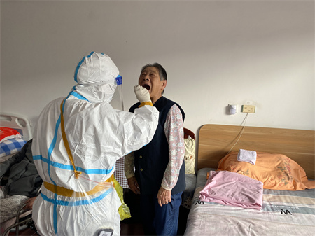 马桥子街道对杏林老年公寓全体养员及员工进行核酸检测,应检尽检,不落一人,让老人和家属安心。街道的工作人员很负责,每个老人都在每个房间进行核酸检测,积极配合,早点让疫情结束。