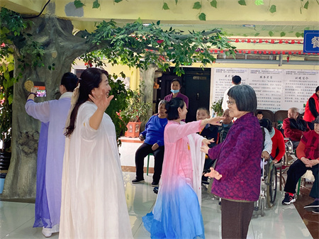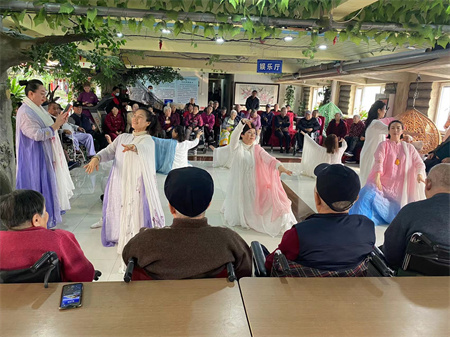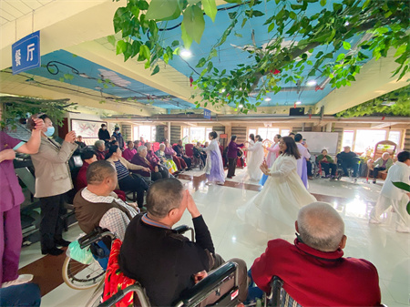 在工作人员的主持下,慰问表演正式开始。志愿者舞蹈队的演员们自编、自演,通过舞蹈等形式为老人们表演节目,精彩的节目博得老人们阵阵掌声。1个多小时的演出掌声不断。歌声、笑声、掌声编织在一起,舞蹈队的精彩表演给敬老院的老人们送去了一份浓浓的祝福,赢得了院内老人们的阵阵掌声,舞蹈队员还亲切与院内老人交谈、互动,让这些老人感到一份贴心的温暖,现场氛围欢乐而温馨。让老人们不再觉得孤单,真实感受到文明、和谐的社会大家庭的温暖,同时也弘扬尊老、敬老的传统美德。