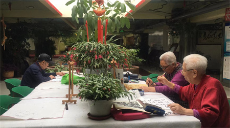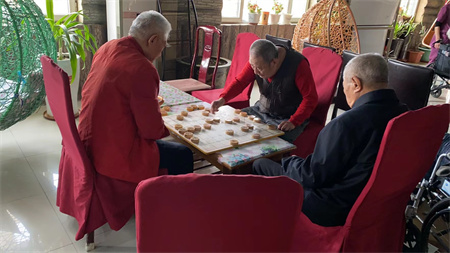 杏林老年公寓中老人们的爱好十分广泛,有的老人喜爱阅读,一大早就取回报纸,和老伙伴们一起讨论国家大事;有的老人爱打麻将,每天早早地聚在麻将桌前过牌瘾;爱好象棋的老人们常常凑在象棋桌前一同思考棋局;爱好书法的老人总是约着一起练练字;老人们也总会在一起比拼的身影,真是精彩绝伦。