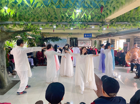 现在的老年人每天有大把的空闲时间难以消耗,因此更需要参加各种形式的文化娱乐生活,丰富老人的日常生活,每天还有长白班带领老人在活动大厅唱歌跳舞。