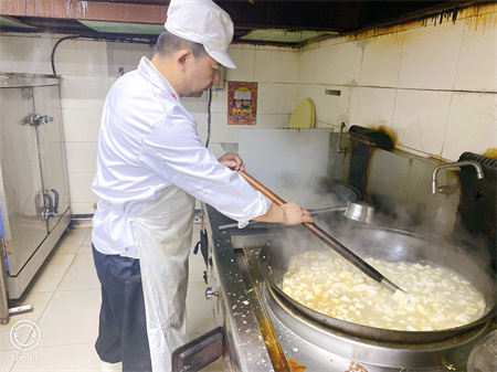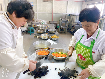五点半厨房就开始做早饭,早饭一般一个粥一个鸡蛋两个菜,做完早饭收拾完就开始忙乎中午的伙食,厨房的工作人员就开始为老人们准备午餐,按照今日食谱制作,工作人员首先分成两组,一组制作面食,一组准备配菜,面食制作完成放进蒸箱时,厨师也开始了菜品的制作,帮厨们和护理员一起把午饭送到老人房间,让老人准时享用美味。