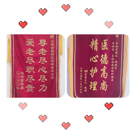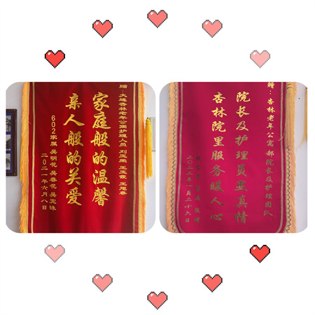 在优越的环境和优质的服务下,很多老人享受到了老年人的天伦之乐,身体和心理上都得到了良好的改善,家属们为了表示感谢,特赠送了锦旗,这份礼物是对我们杏林养老院的认可,对我们全体工作人员的认可,能够得到大家的支持和认可,我们是欣慰的,不管多苦多累的付出都是值得的,在以后的工作中,杏林养老会一如既往的为老年人服务,打造适合老年人的居住和生活环境。