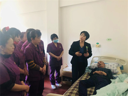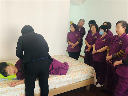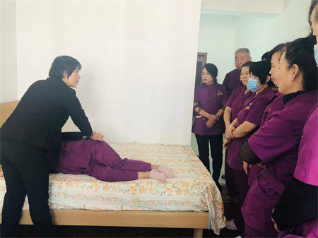 之后郝院长带领护理员进行实操,让护理员可以亲身体验。