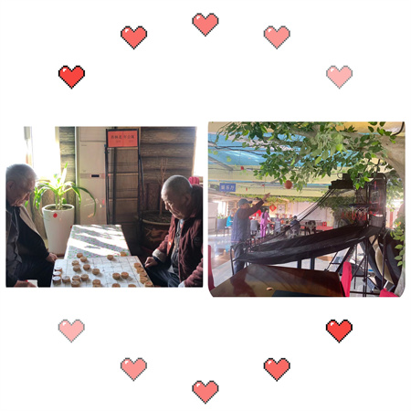 活动中心:麻将、棋牌、乒乓球、台球、投篮机等娱乐设施,专业的舞台设计,高清投影、大厅可容纳500余人,为老年人的个人才艺展示、节日欢庆、生日聚会、文艺汇演等提供活动娱乐场所,使老年人的业余生活多姿多彩!