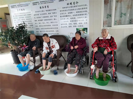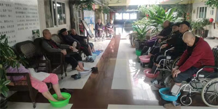 杏林老年公寓始终坚持每天都会给老人泡脚,泡脚可以缓解脚部酸痛,护理员每天都会给老人打洗脚水给老人泡脚。