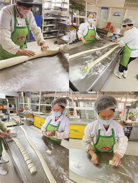 做完早饭收拾完就开始忙乎中午的伙食,厨房的工作人员就开始为老人们准备午餐,按照今日食谱制作,工作人员首先分成两组,一组制作面食,一组准备配菜,面食制作完成放进蒸箱时,厨师也开始了菜品的制作,帮厨们和护理员一起把午饭送到老人房间,让老人准时享用美味。