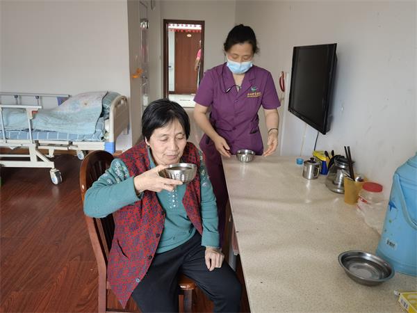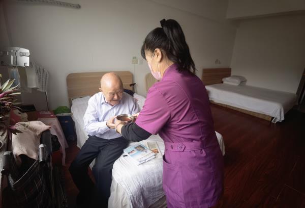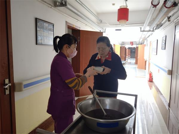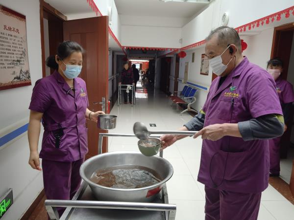 护理人员亲自给老人送上一碗姜糖水