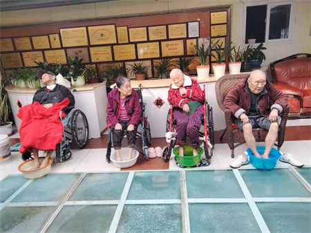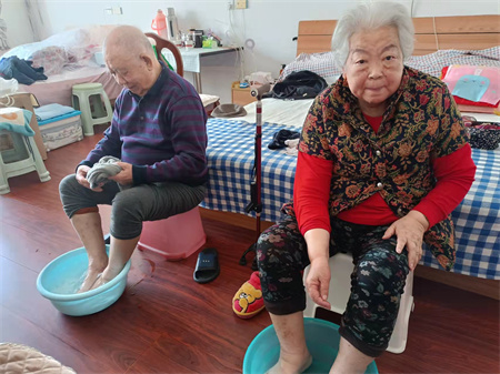 杏林老年公寓始终坚持每天都会给老人泡脚,始终如一,尤其是冬天到了,泡脚可以缓解脚部酸痛,护理员每天都会给老人打洗脚水给老人泡脚。