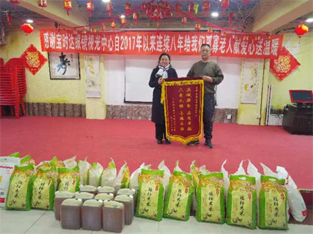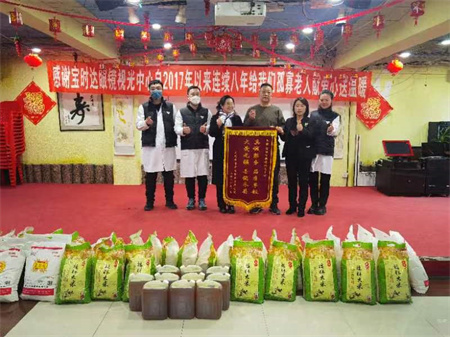 宝时达眼镜视光中心自从2017年以来连续八年给我们杏林老年公寓的老人献爱心送温暖,宝时达来看望老爸老妈还送了米面油,最后还给宝时达眼镜送上锦旗表示感谢。