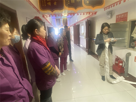 院长亲自带领员工进行消防栓的演习,从消防栓接头到链接水源,取出防火带伸到着火源的地方,扑灭火源,消防安全应急器材使用:灭火器、消防栓的使用方法,我们都应该人人有责。