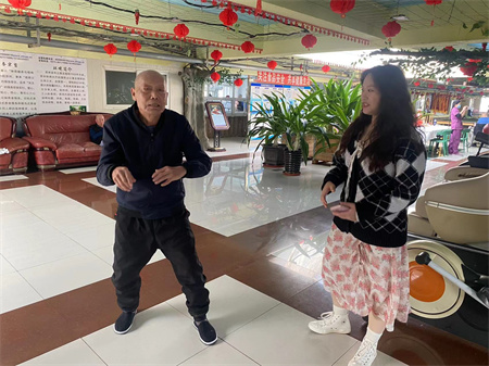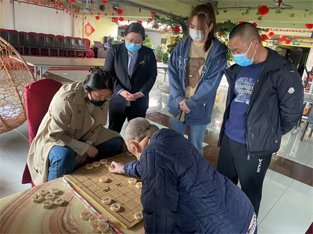 他们的到来老爸老妈很开心,因为他们不止一次来到这里,每次来到这里都会陪着老爸老妈聊天、下象棋,推着老爸老妈在活动大厅溜达,这次来到这里都是刚毕业的大学生,看到她们就像看到自己的孙子孙女一样很亲切。