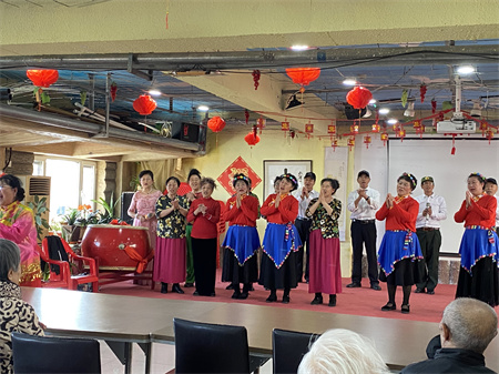 红歌演唱团又给老爸老妈带来了舞蹈表演,还有歌曲演唱,声音是那样动听。