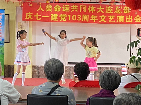 人类命运共同体大连总部庆七一建觉103周年来到杏林老年公寓文艺演出,带来了精彩歌舞表演,让老爸老妈融入进来。