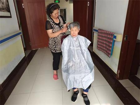 杏林老年公寓服务特色二:为半自理和特护老人提供定期理发和指甲修剪服务,保证老人都能保持整洁的仪容,年纪大了也要美美地享受幸福的晚年生活。为了给老人们理发,杏林老年公寓的护理员们都练就了一身好手艺。杏林老年公寓的护理员们虽不是专业的理发师,但为许多行动不便的老人免去了出行的麻烦,老人们每次理发后都精神焕发,格外清爽。许多老人因年轻时在工作中受伤或其他原因指甲变厚变硬,护理员们也会仔细耐心地帮老人修剪好。