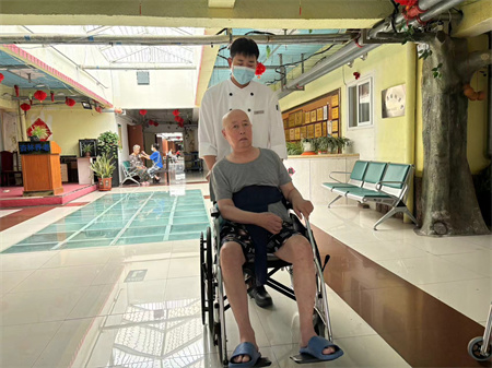 他们的到来老爸老妈很开心,他们来到这里都会陪着老爸老妈聊家常,推着老爸老妈在活动大厅溜达,看到她们就像看到自己的孩子一样很亲切。