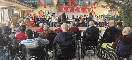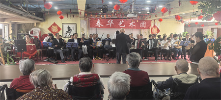 在这个九九重阳节的日子里春华艺术团的艺术家们来到杏林老年公寓慰问演出,春华艺术团艺术家又给老爸老妈带来了舞蹈表演,快板,还有歌曲演唱,声音是那样动听。