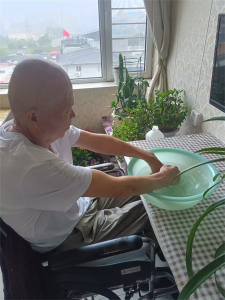 1. 自己洗脸:自理老人自己走到洗面台,坐在椅子上洗;走不动但可以坐起的老人在床上洗,总之尽量自己洗。